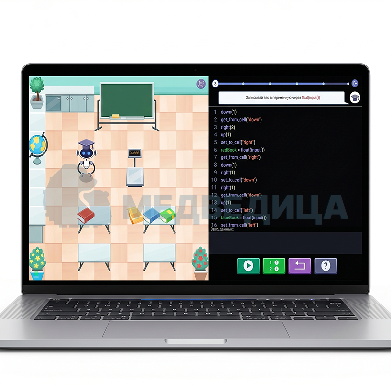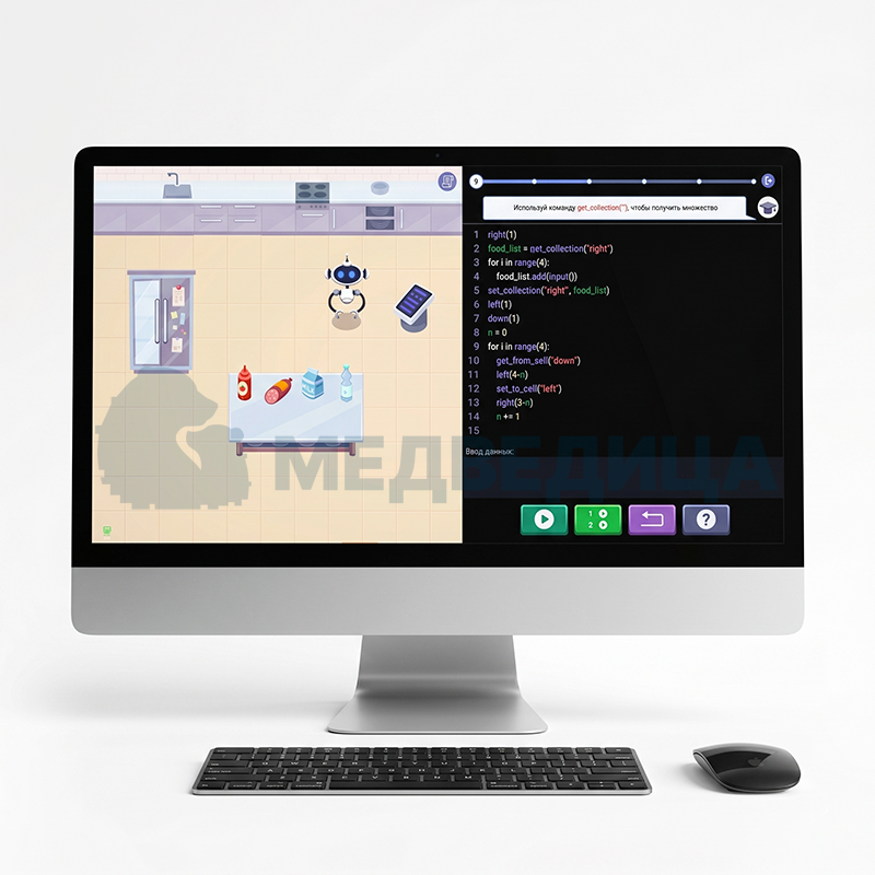 Конструктивно ПО реализовано как клиентская среда с интуитивно понятным интерфейсом. Ученик пишет реальный код, который приводит в движение исполнителя (робота) на экране. Гибкая система уровней позволяет обучающимся учиться на собственных ошибках, повторяя попытки без психологического дискомфорта, что критически важно для формирования устойчивого интереса к IT-дисциплинам.