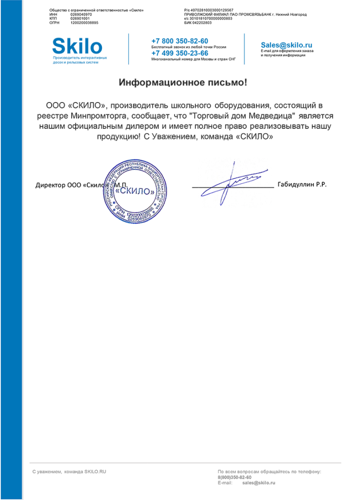 Подтверждение статуса партнёра / дилера